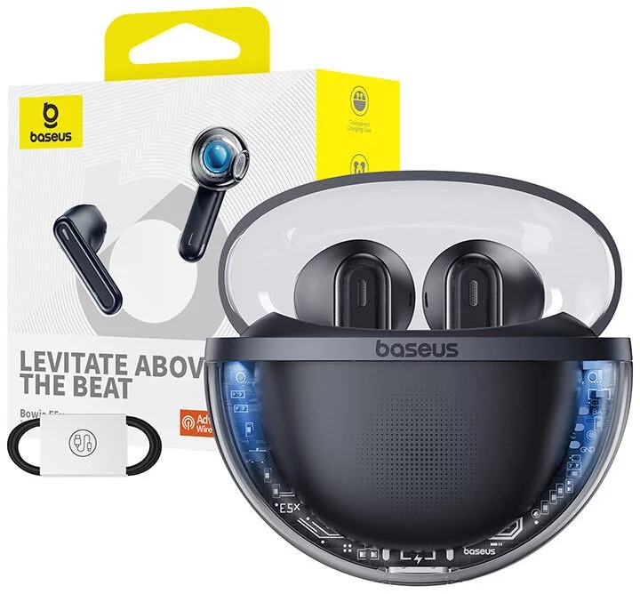 Kufjet Baseus Bowie E5x janë kufje True Wireless Stereo (TWS) me një dizajn futurist dhe tërheqës, të pajisura me teknologjinë Bluetooth 5.3. Veçoritë e tyre kryesore përfshijnë një kuti karikimi transparente me ndriçim RGB, zhurmë-reduktim me 4 mikrofonë për telefonata të qarta, dhe një modalitet me vonesë të ulët (latency) prej 60ms ideal për lojëra