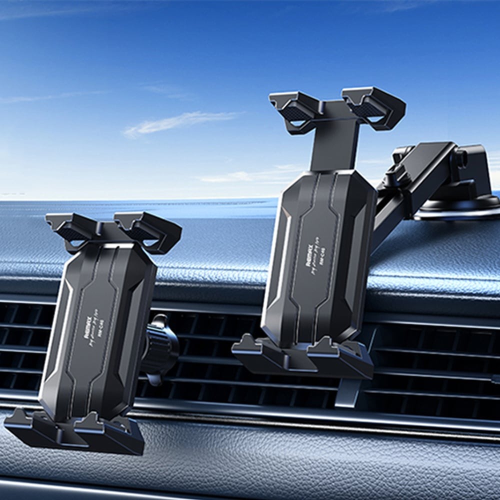 Remax RM-C46 është një mbështetëse telefoni dhe tableti shumëfunksionale dhe shumëfunksionale me një ndërtim të qëndrueshëm prej aliazhi alumini. Shërben si një mbështetëse makine 4-në-1 (për kanalet e ajrit, panelet dhe xhamat e përparmë) dhe si një mbështetëse teleskopike për tavolinë, duke ofruar kompatibilitet të gjerë (4.7–14 inç) dhe një rrotullim të plotë 360 gradë.
