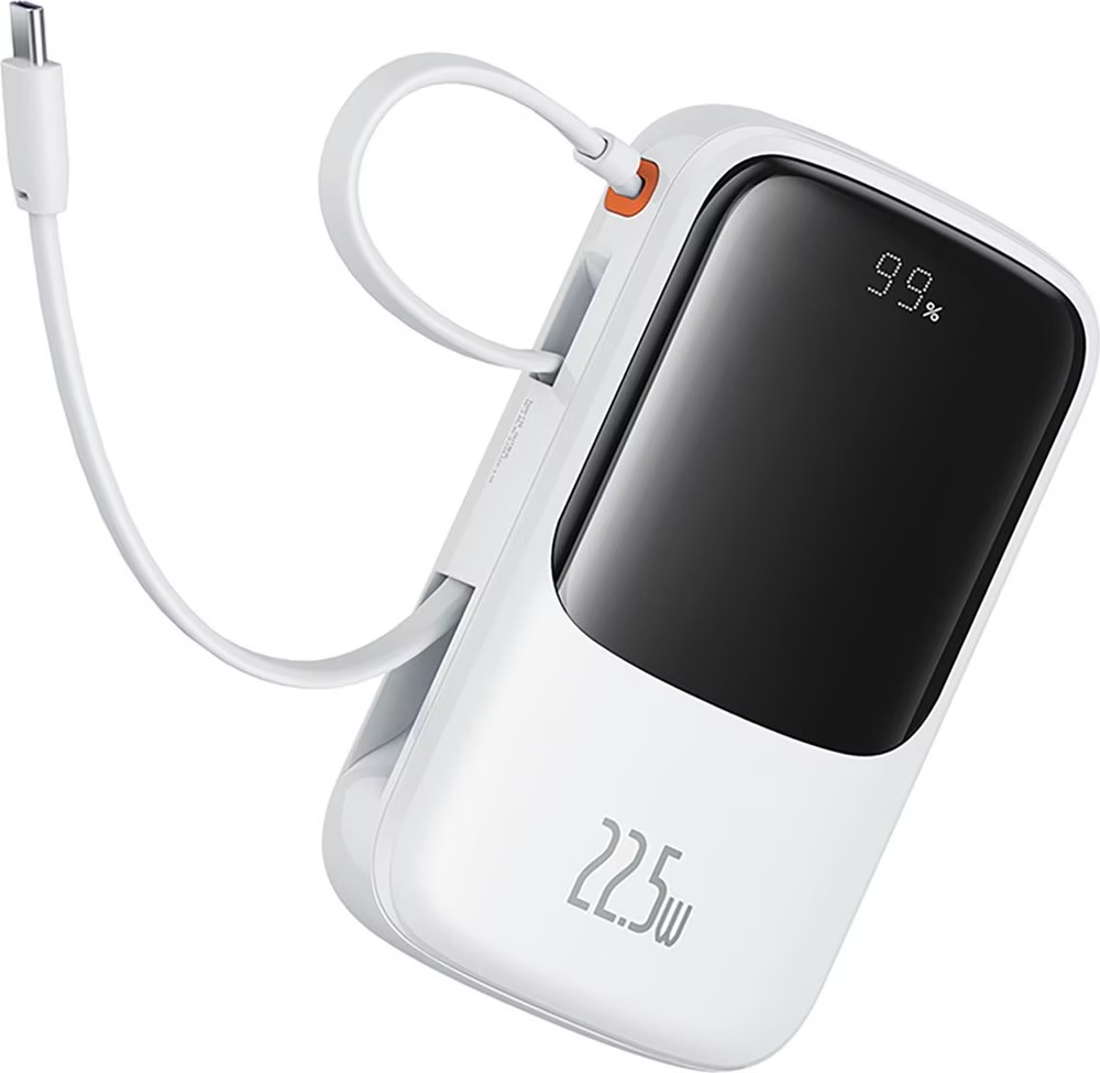 Baseus Qpow Pro+ 10.000 mAh është një Power Bank kompakte dhe e lëvizshme që përmban aftësi të karikimit të shpejtë 22,5 W, një kabllo USB-C të integruar që funksionon si një qark i dobishëm dhe një ekran dixhital për të treguar nivelin e baterisë.